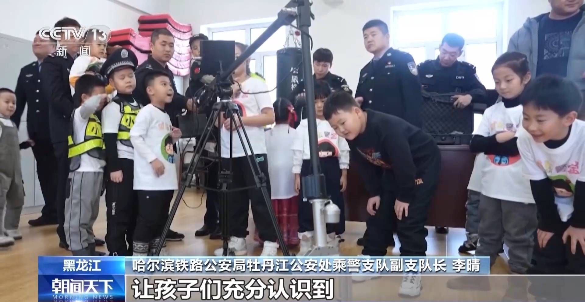 哈尔滨铁路公安局牡丹江公安处乘警支队副支队长李晴:组织学生们观看法治教育宣传片,进行特警技能演练、警用装备展示等,让孩子们充分认识到学法、知法、懂法、用法的重要性。这样的活动我们还会持续开展下去,守护中小学生平安健康成长。