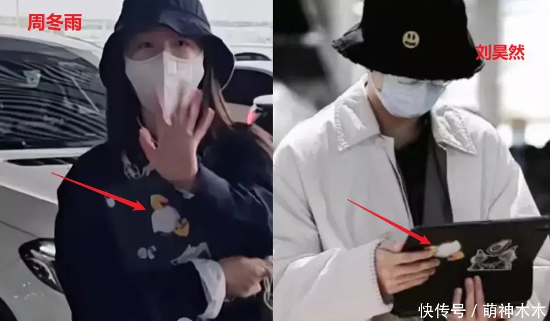 网友质疑两人是“诈分”,随后刘昊然和周冬雨更多情侣同款也被扒出来了。最明显的就是两人的手机壳贴纸,都有鸭屁股和星星的元素。